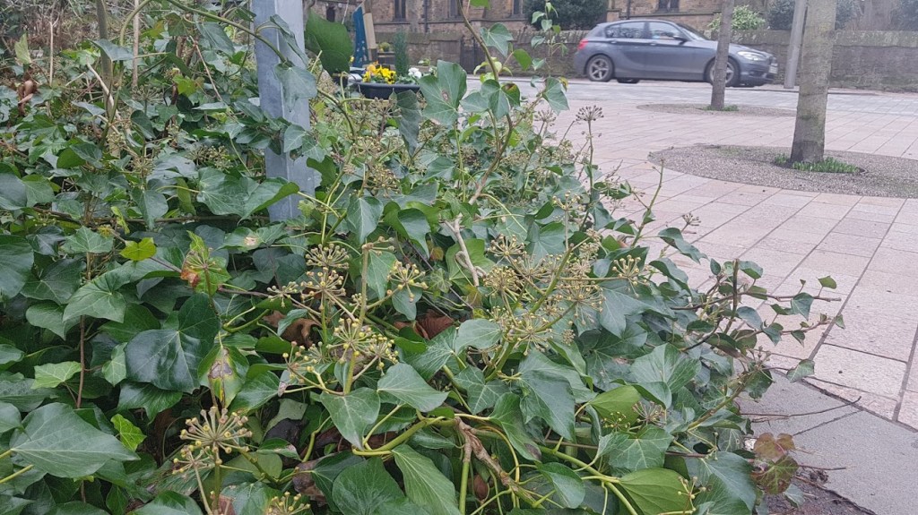 What is it? A creeping evergreen plant that characteristically climbs trees, poles and houses. Although the plant I took a photo of today was on the ground. Unlike most UK native flora this plant flowers in the Autumn months where it provides a late-season source of nectar for a large variety of insects.