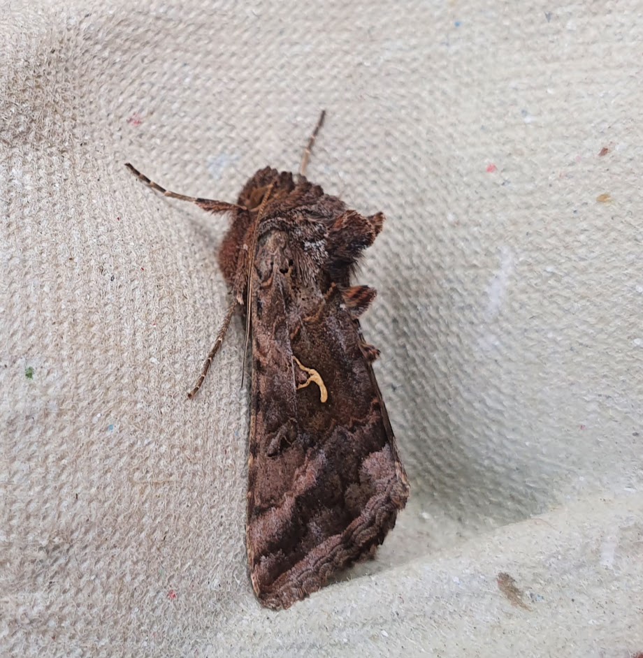 Anyway, it is a fairly large moth with the forewing measuring up to about 20mm and is variable in colour although it is usually a degree of grey or brown, but always with a metallic silver ‘Y’ shaped marking, giving it both it’s English name and Scientific name, with the lower-case gamma being very similar to the lower case ‘y’ in the Latin alphabet.